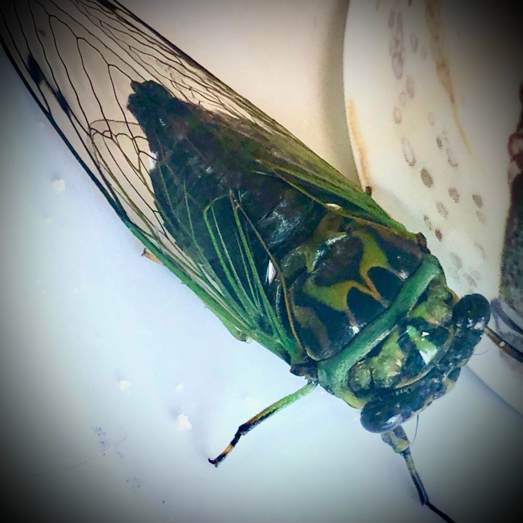 A large cicada lit on my breakfast plate, a heavenly distraction!
