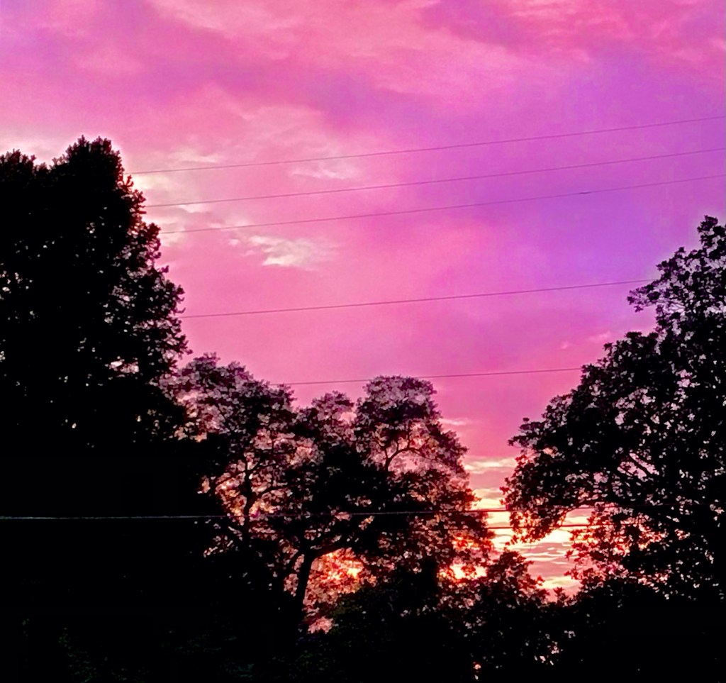 The sunset tonight was painted in the most beautiful shades of pink and orange. It’s amazing how the clouds catch the last red-orange rays of the setting sun and paint such wonderful masterpieces. Watching the sun set each day is such a calming, restful moment. The day is winding down to night and watching the sunset gives us a sense of peace. The stress of the day melts away as we watch the colors meld and go dark and silent.