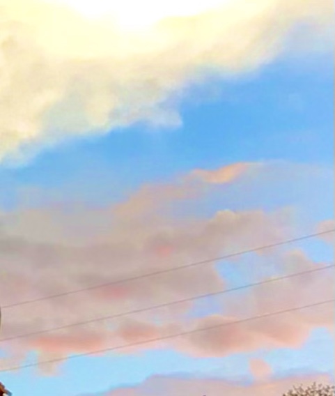 After our conversations I headed back to the porch to wait for the clouds to change colors. I took two beautiful photos of the sun painting the clouds at dusk. It’s amazing how quickly the clouds are transformed with different colors and how fleeting it is. Only lasts a few seconds. Saw one cloud shaped just like a large hand. Couldn’t help but think of God reaching out and welcoming someone to heaven. The cloud was huge. The hand was open, waiting for another hand to reach out. Made me think of sitting by Chief’s bedside when he was dying and thinking of Rosie reaching out for his hand, welcoming him to heaven.