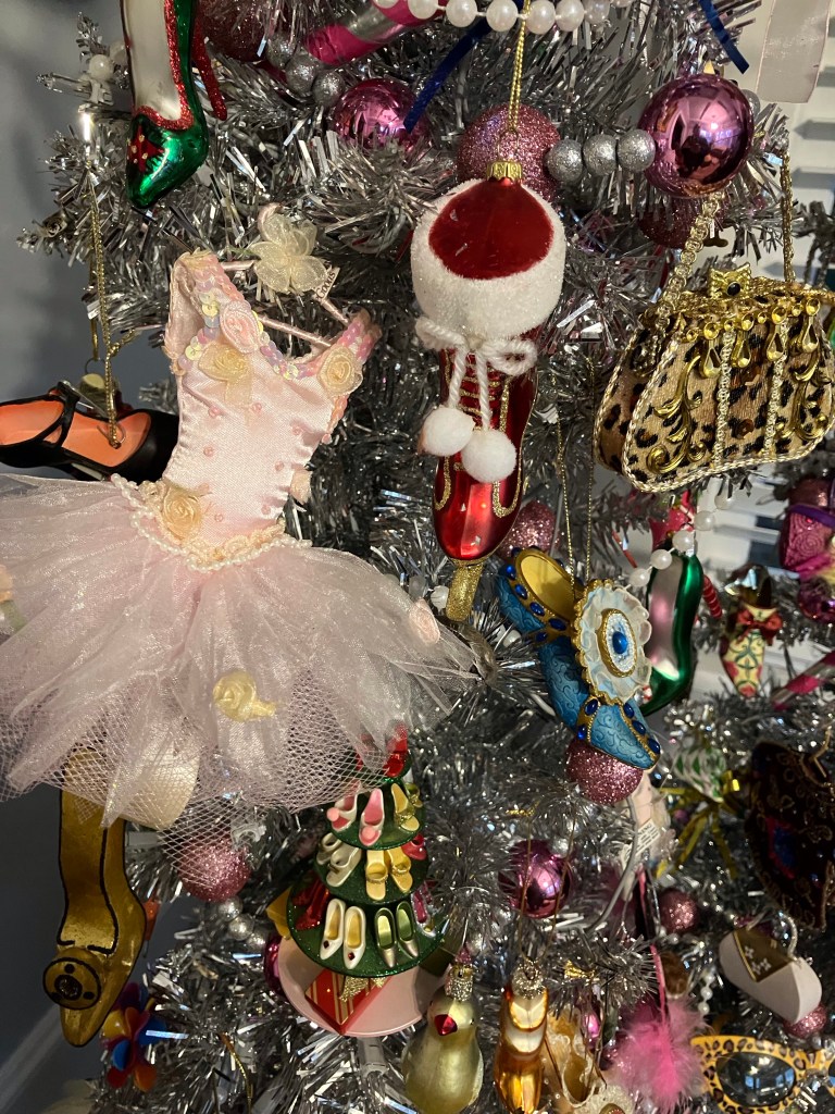 Took all of Rosie’s ornaments off her old Christmas tree today. I put a garbage bag over the tree last year and squished it in the Christmas closet knowing she needed a new tree for this year. I put all her ornaments on two tall slender silver tinsel trees in the lady den. She collected shoe ornaments and after her death I put them on a little Christmas tree and then I began collecting shoes and purses and little girlie ornaments to continue her collection. She’s been gone 21 years, but the wound of her death is just as fresh as the day it happened. I cried putting the ornaments on the tree today. If she was living, I know Santa would have to put an expensive purse under the tree! Probably some, shoes, too!