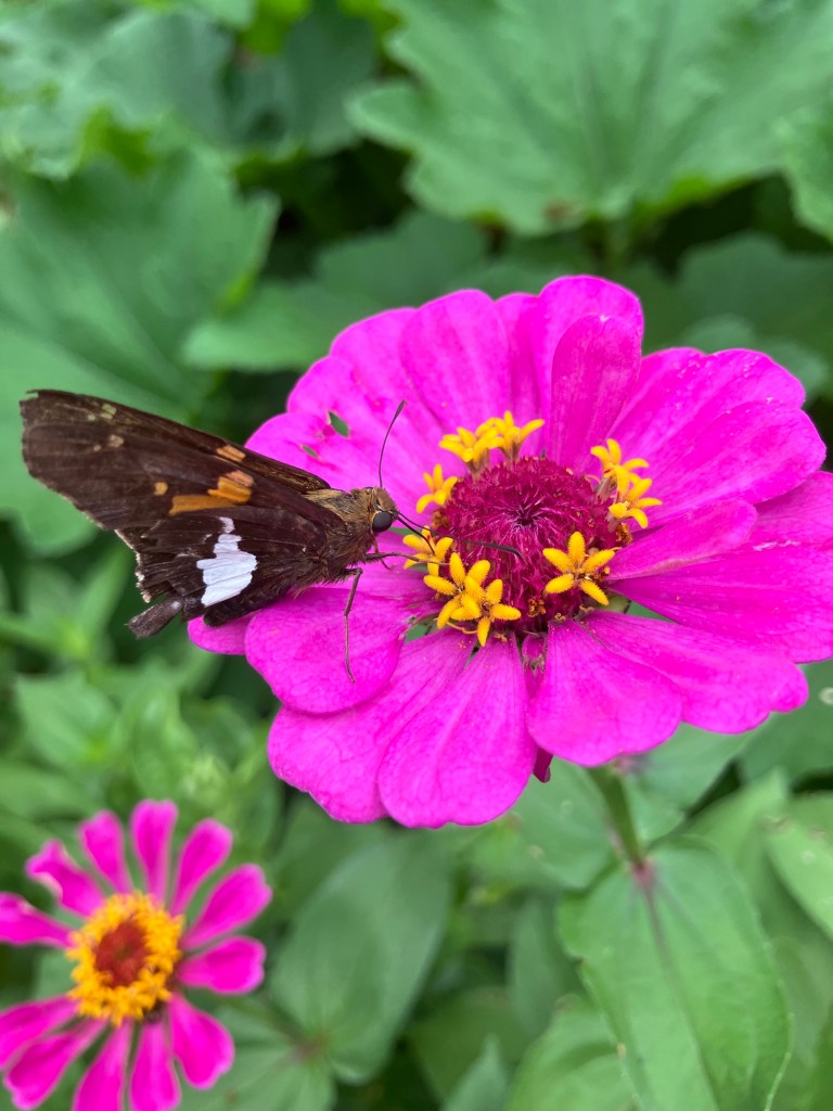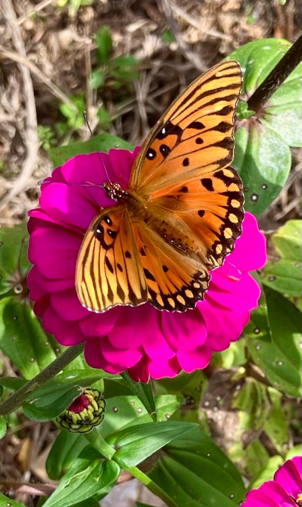 The butterflies are back visiting my yard and I followed them all around the zinnias today. They are beautiful, humble little critters and sat patiently or tap danced happily while I took numerous photos of them on the blossoms. My little flower garden has been full of honey bees and bumble bees and visiting butterflies. The songbirds were flitting around the garden bird feeders. I sat in the old white rocking chair and watched the butterflies drinking nectar from the vivid zinnia blooms, slowly warming their wings in the warm sunshine, saying their prayers of thanks for the wondrous day. The bumble bees were gathering the yellow pollen in their little leg baskets. So delightful to watch nature and the morning unfold so beautifully.