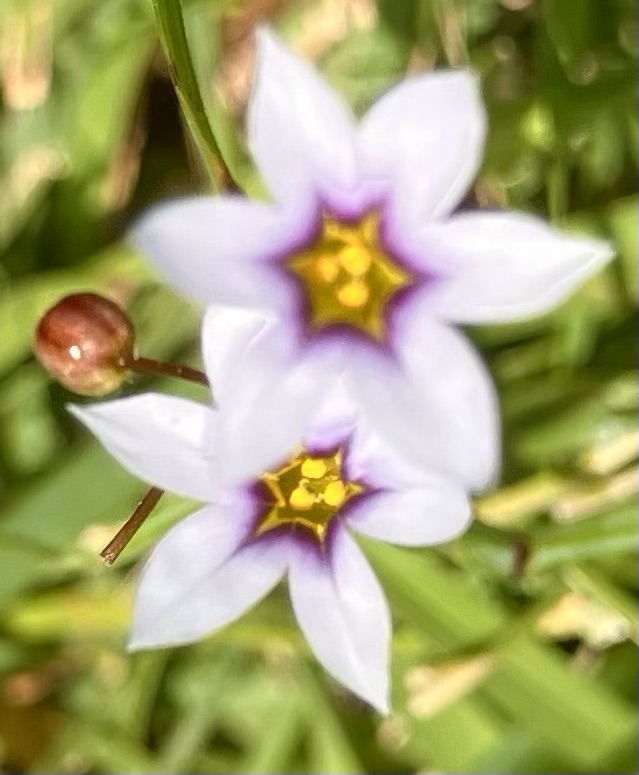 As I walked Penelope I noted the miniature wildflowers in the yards, so tiny they would fit on a pencil eraser. The colors are glorious — pale lilac, mauve and periwinkle — only the watercolors of God could paint so beautifully. If you saw me stumbling around the yard today I was not in the hooch, I was trying to photograph the little wildflowers while corralling Penelope. I took her back to the play pen on the porch and when I went back to where I saw the little flowers I could not find them. I think I got one picture that wasn’t blurry, maybe not.