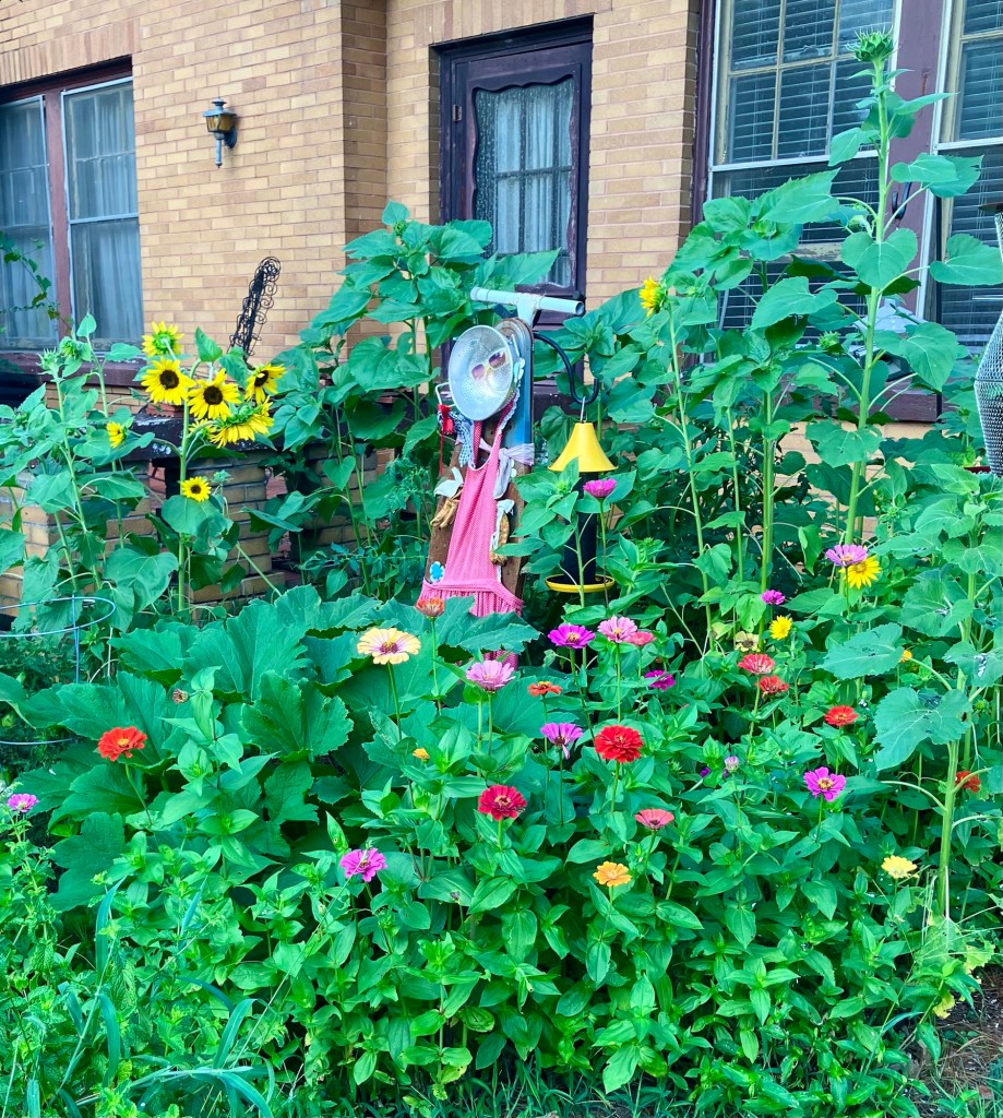 Zinnias for the butterfly ballerinas and sunflowers for the songbirds.