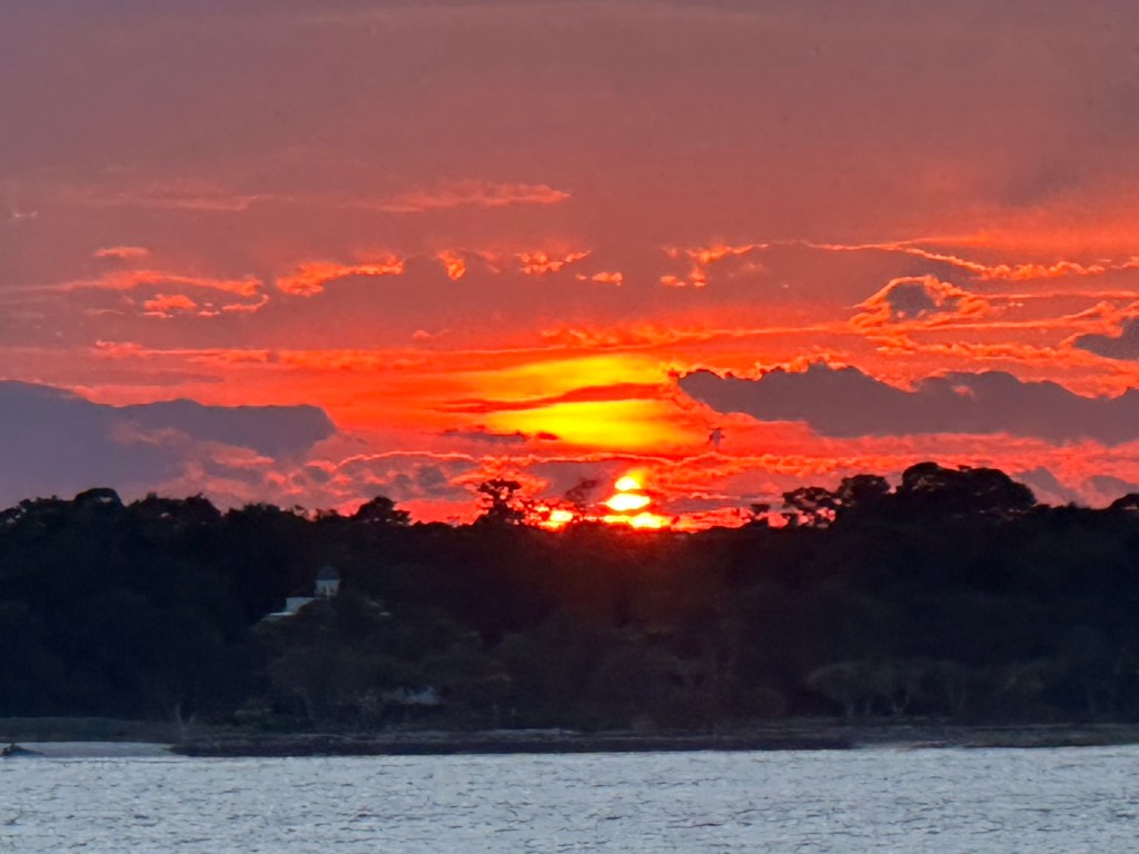 I watched the sunset tonight as Mother Nature lit a wild fire that burned bright across the horizon. My oldest grandson has become my blog photographer on this trip. He captured tonight’s sunset in all it’s glory. As Sharon Rene said, “Enjoy the beauty of a sunset, nature’s farewell kiss for the night.”
