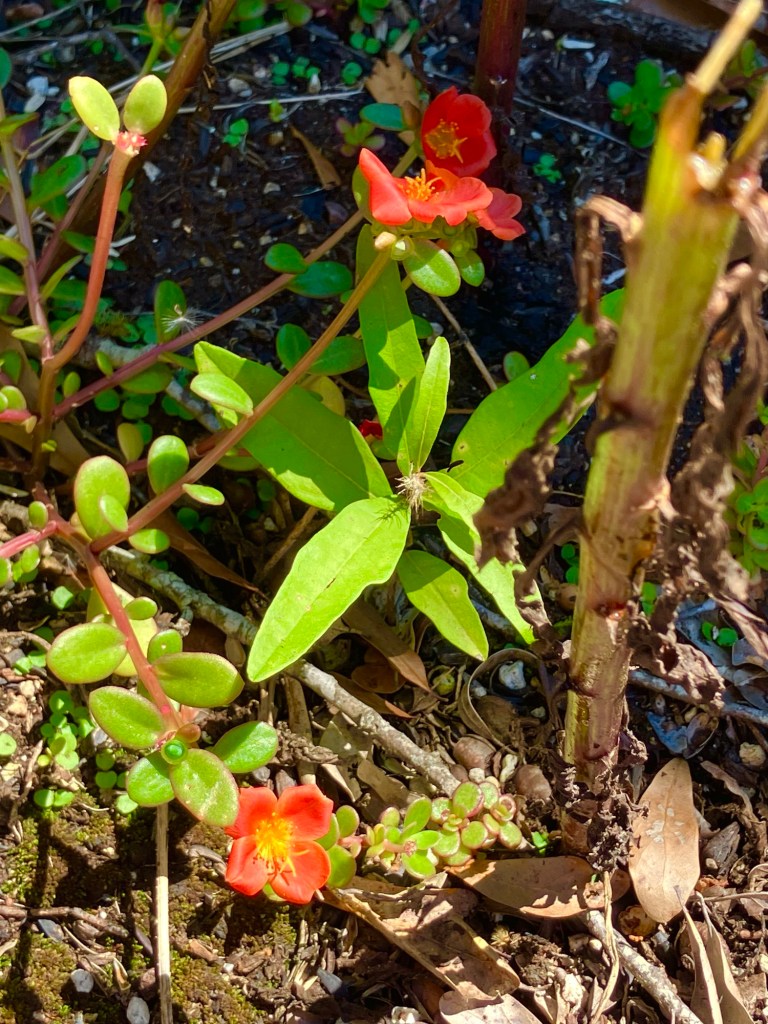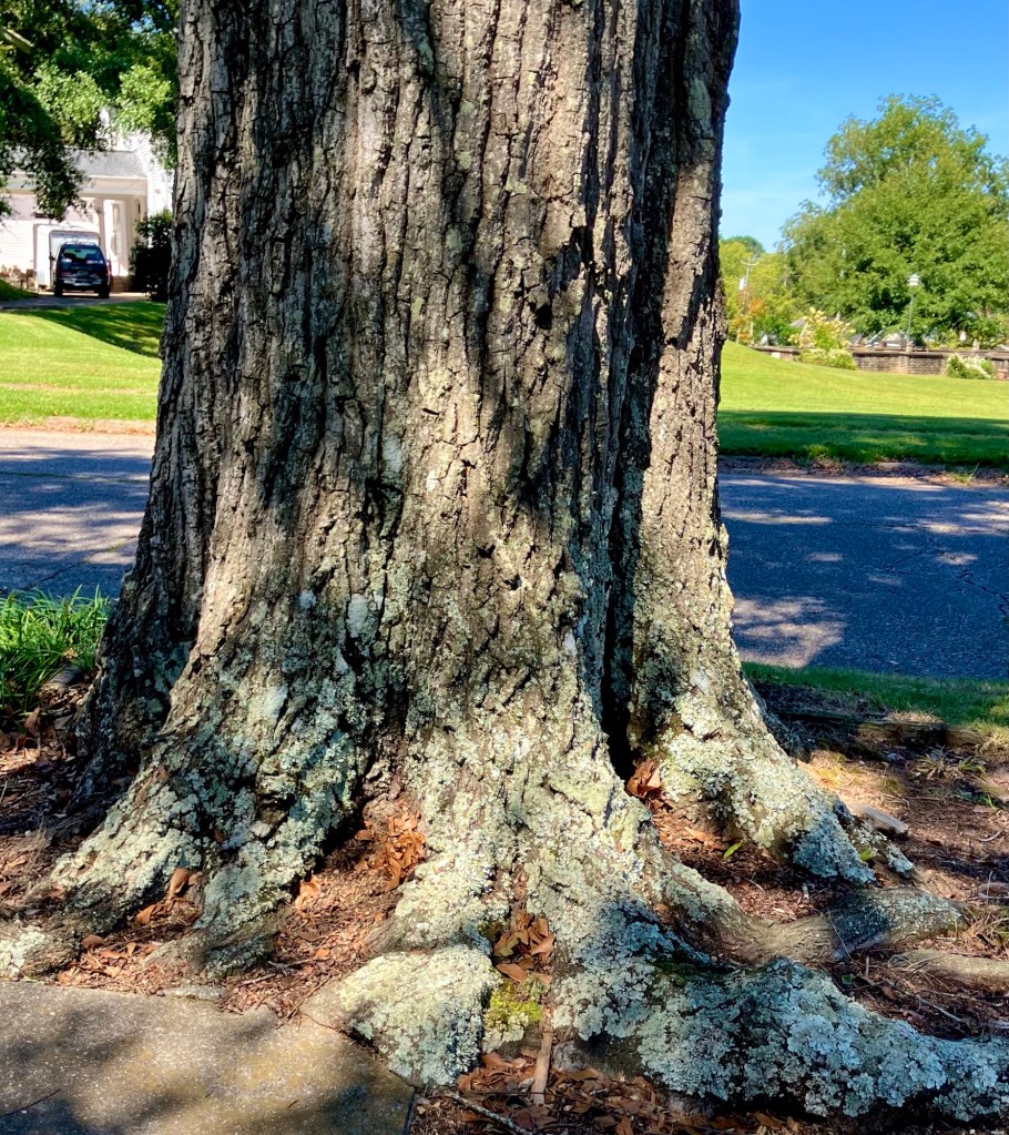 Another glorious day the Lord has made. The blue heavens are covered in bird feather clouds, so pretty as I watched them form and change shapes, some stretching out like angel wings. I walked Penelope down the broken sidewalk next door taking photos of the day’s prizes I saw — the huge dinosaur foot of the old oak tree, a pretty gray bird feather, some orange blooms in an old wheelbarrow, and a lone red zinnia under the bird feeders. I love seeing nature in unexpected places. After walking Penelope I sat in my purple yard chair reading a book. Penelope was content on her leash, taking a sunbath in the warm sunshine.
