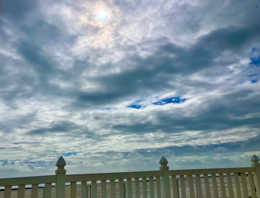 I woke up at 6:08 this morning and peeked out the window to see if dearest friend was still with us. She told me goodbye when we went to bed, planning to leave early morning for Alexander City to pick up her dog Charlie Brown from the boarders. I looked out the window at 6:30 and she had gone. We had a wonderful trip to Florida, watching the roughhousing waves and the storm clouds in their beautiful watercolored blues and purples and grays. The sun poked her rays out a few times on our trip turning the ocean a polished pewter. So beautiful with the sun’s reflection kissing the water. We didn’t let the weather deter us. We happily sat out on the beach with gale force wind gusts throwing little sand daggers at us. I’ll never forget these days of laughter.